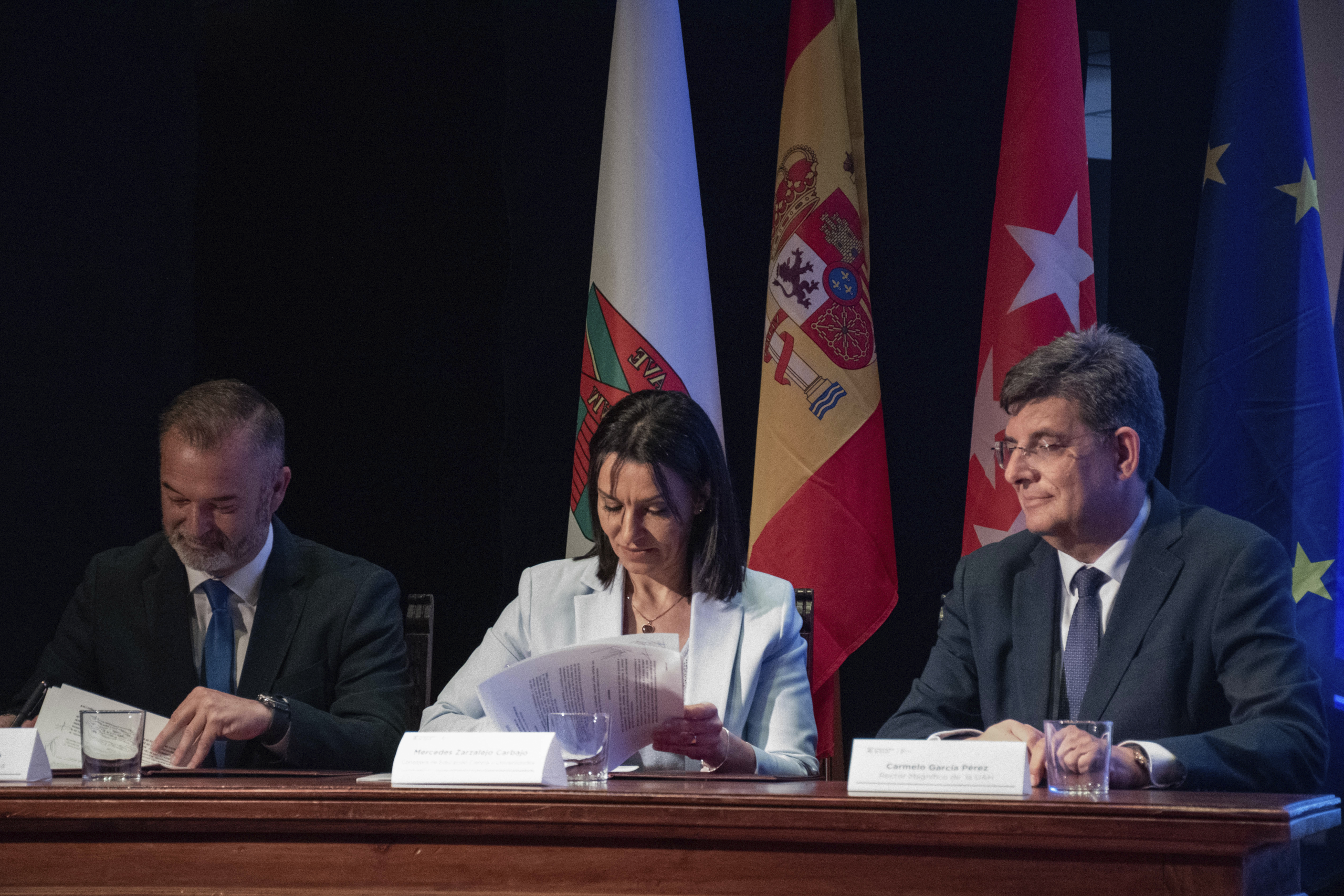 En este acto, el recién nombrado Rector Magnífico de la Universidad de Alcalá, Carmelo García, ha firmado junto a la Consejera de Educación, Ciencia y Universidades Mercedes Zarzalejo y al Alcalde del Ayuntamiento de Daganzo de Arriba Manuel Jurado, esta Cátedra Daganzo – UAH de Arqueología Pública, dirigida por Manuel Castro, Decano de la Facultad de Filosofía y Letras y profesor titular del Área de Arqueología de la Universidad de Alcalá.